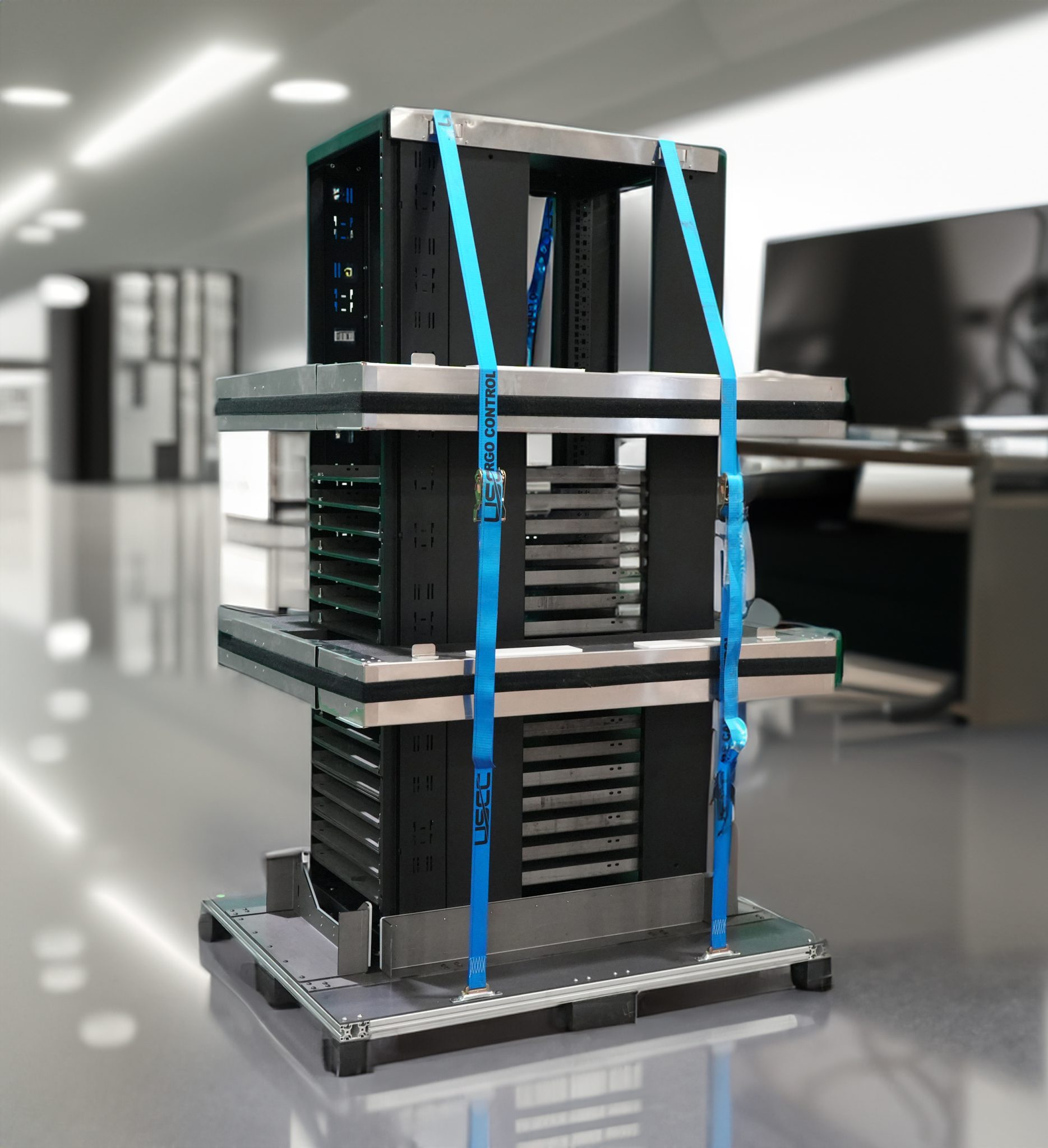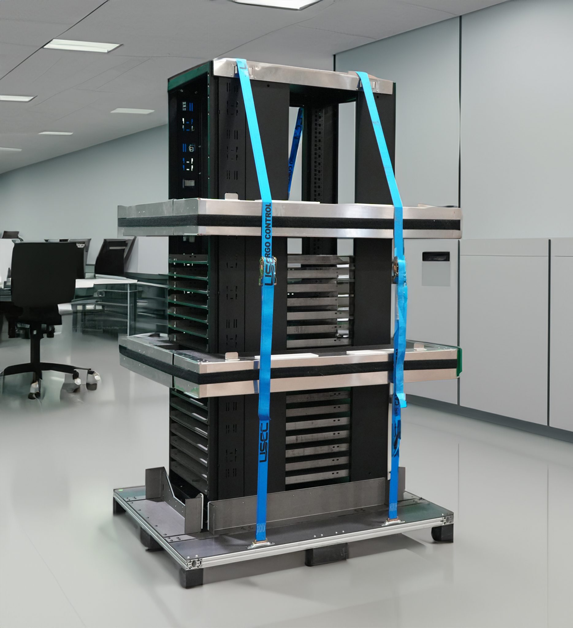 - New rack packaging features revolutionary floating base design that ensures the packaging absorbs shocks and vibrations to keep the racks safe during transit.